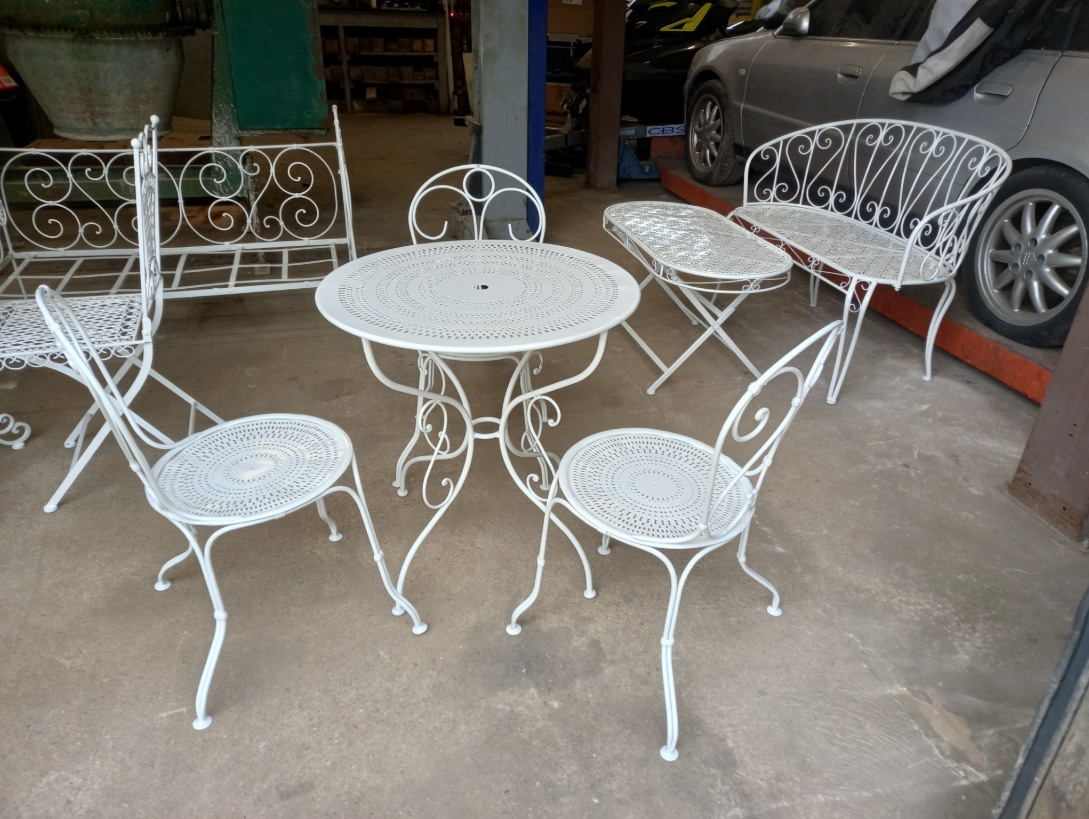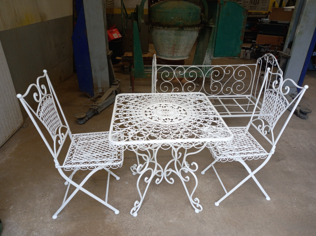 LM Sablage est intervenu sur une table de jardin afin de réaliser une métallisation complète. Cette technique consiste à projeter un métal sur la surface pour créer une protection durable contre la corrosion et l’usure, tout en conservant l’aspect esthétique de la table.