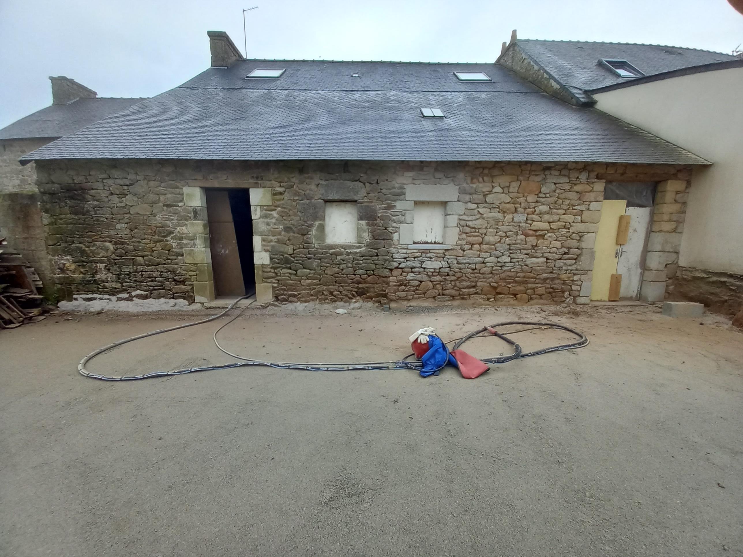 LM Sablage est intervenu sur une maison en pierre afin de procéder à un sablage complet de la façade. Cette technique permet de retirer les salissures, mousses, anciennes peintures ou enduits, tout en préservant la texture et l’authenticité de la pierre.